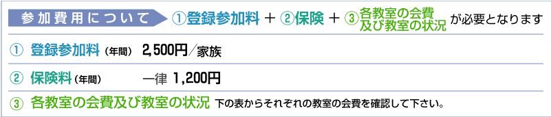 【キッズ・エンジョイ】 (6000円/半期 月1000円換算) 【短距離・長距離】 (18000円/半期 月3000円換算) (別に年会費と保険料がかかります。) |